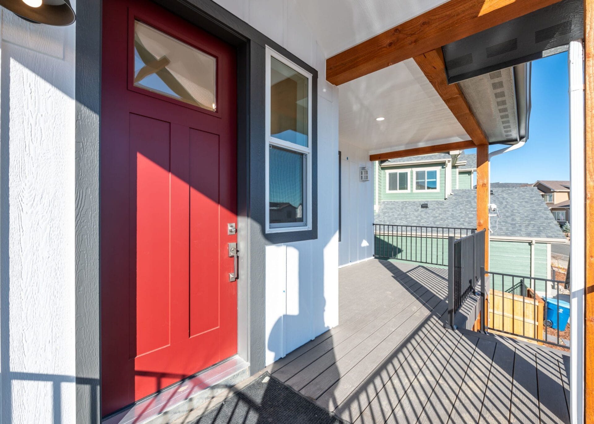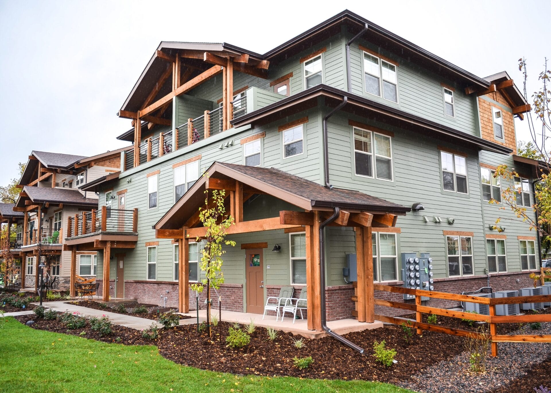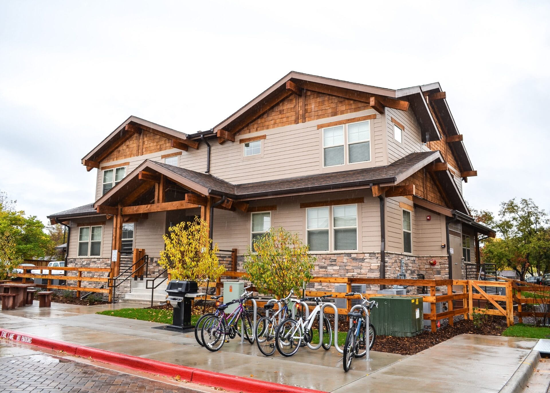 Craftsman-style Longmont triplex: timber accents, stone bases, balconies,
