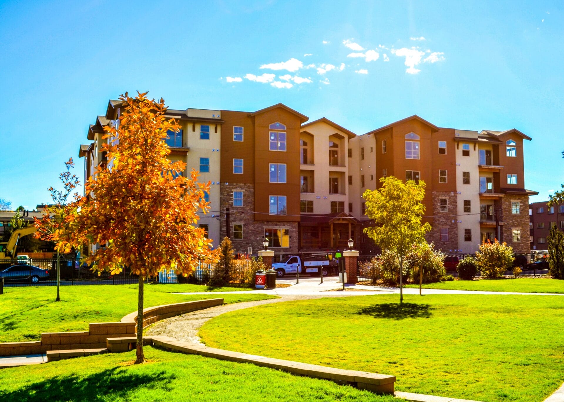 Contemporary living with stone accents, balconies, and vibrant lounge amenities.